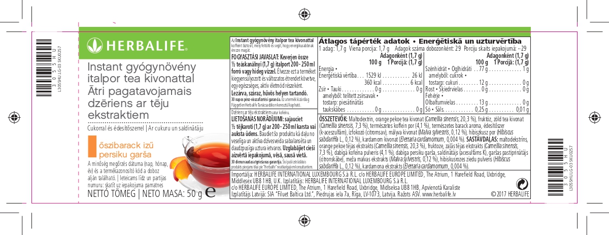 Šķīstošais zāļu dzēriens ar tēju ekstraktiem – persiku garša (50g)